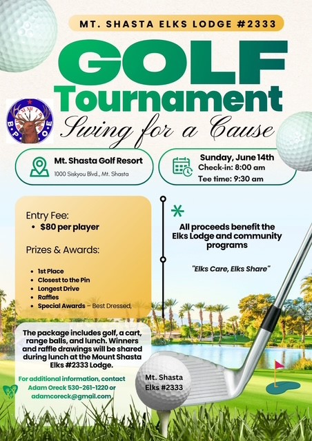 Join the Elks tournament! June 14th. Check in 8:00am, tee time 9:30am. All proceeds benefit the Elks Lodge and community programs. $80/player. Includes golf, cart, range balls, lunch. Raffle drawing […]